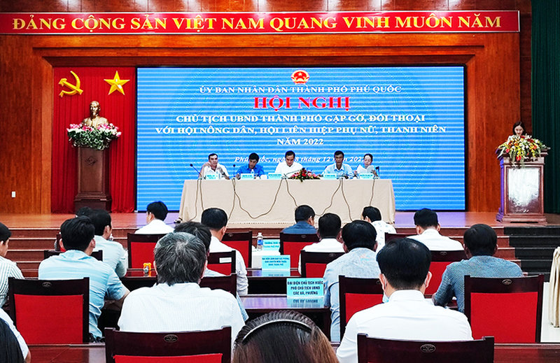Chiều ngày 28/12/2022, tại Hội trường C-HĐND &UBND thành phố Phú Quốc, đã tổ chức Hội nghị gặp gỡ, đối thoại với hội viên Hội nông dân, Hội liên hiệp Phụ nữ và đoàn viên Thanh niên năm 2022.