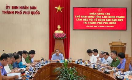 Sáng ngày 10-5, Chủ tịch UBND tỉnh Lâm Minh Thành chủ trì buổi làm việc với Ban Thường vụ Thành ủy Phú Quốc về kết quả thực hiện nhiệm vụ phát triển kinh tế - xã hội quý I và một số nhiệm vụ trọng tâm quý II, năm 2024.