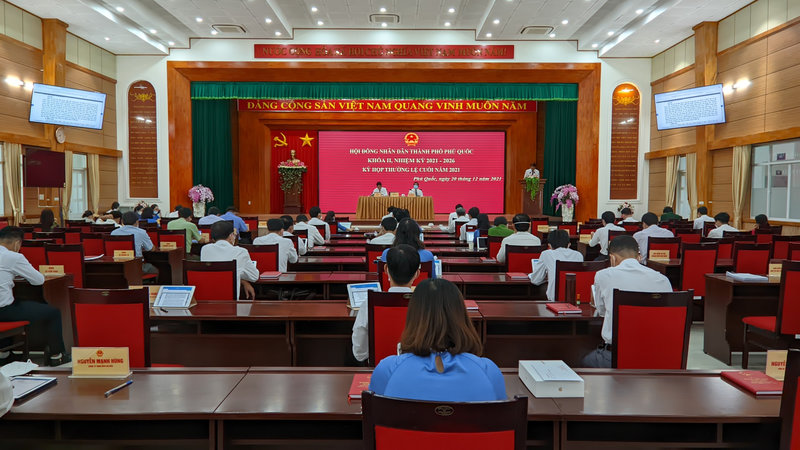 Sáng ngày 20/12/2021, Hội đồng nhân dân thành phố Phú Quốc khóa II, nhiệm kỳ 2021-2026, tổ chức kỳ họp thường lệ cuối năm 2021 (kỳ họp thứ 4), để báo cáo tình hình thực hiện nhiệm vụ phát triển kinh tế-xã hội năm 2021, triển khai nhiệm vụ năm 2022 và xem xét, quyết định một số vấn đề thuộc thẩm quyền của Hội đồng nhân dân thành phố.