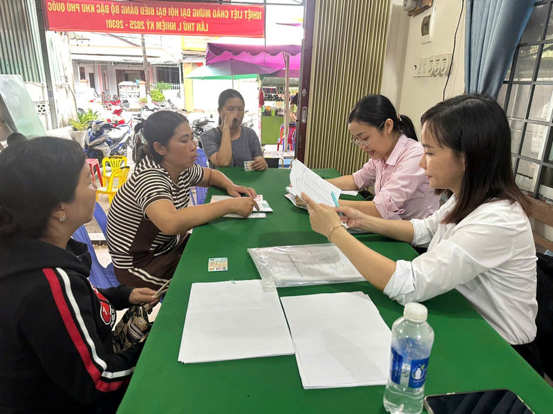Ngày 25/8/2025 là ngày đầu tiên Phòng giao dịch NHCSXH Phú Quốc tiến hành thực hiện đối chiếu phân loại nợ và bổ sung hồ sơ mở tài khoản của tổ viên trên địa bàn điểm giao dịch Dương Đông. Đúng 7h30 phút, cán bộ Ngân hàng chính sách xã hội Phú Quốc, cán bộ Hội Nông dân và Hội phụ nữ đặc khu đã có mặt tại trụ sở khu phố 1 và khu phố 2-Dương Đông theo lịch đối chiếu tại kế hoạch số 33/KH-UBND.