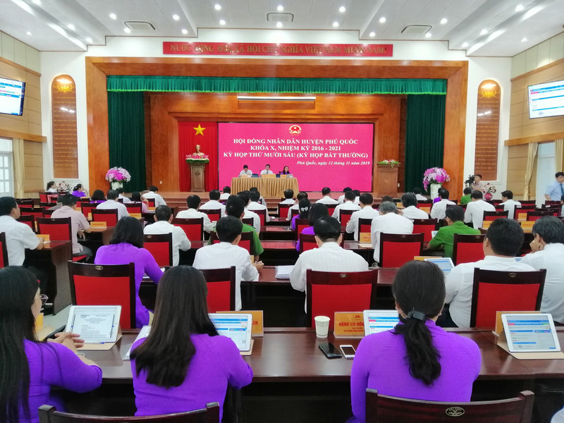 Ngày 12/11/2019, HĐND huyện Phú Quốc tổ chức Kỳ họp thứ mười sáu HĐND huyện khóa X, nhiệm kỳ 2016 – 2021. Dự Kỳ họp có sự hiện diện của Các đồng chí trong Ban Thường vụ Huyện ủy, Thường trực HĐND, lãnh đạo UBND, Ủy ban MTTQ, lãnh đạo các cơ quan, ban ngành, các tổ chức chính trị - xã hội của huyện; Thường trực và hai Ban HĐND các xã, thị trấn.... và 34/37 đại biểu HĐND huyện Phú Quốc.