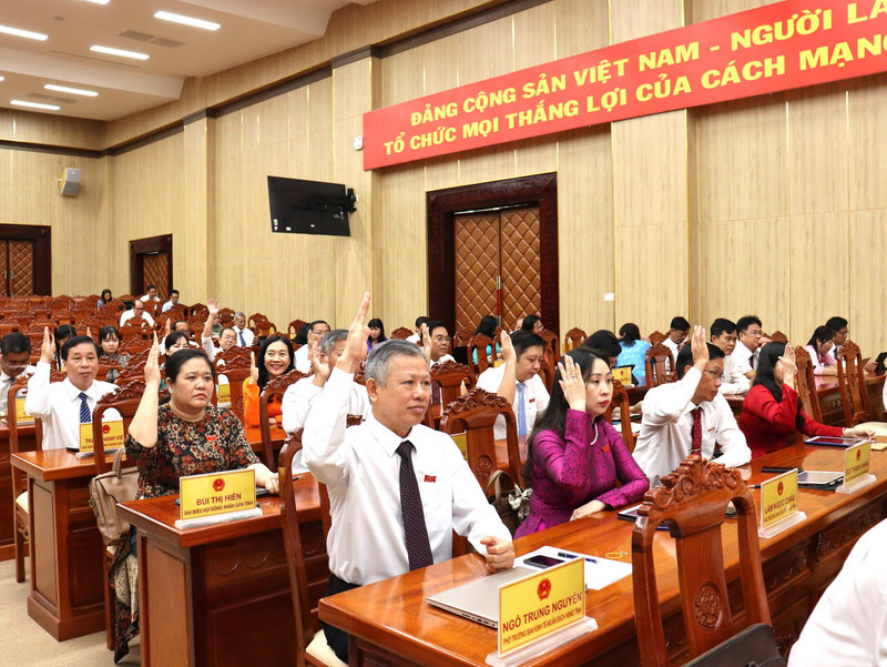 Tại kỳ họp, HĐND tỉnh quyết nghị tán thành ban hành các nghị quyết: Điều chỉnh, bổ sung nhiệm vụ phát triển kinh tế - xã hội tỉnh năm 2025, với mục tiêu tốc độ tăng trưởng kinh tế đạt từ 8% trở lên; GRDP bình quân đầu người đạt 91,48 triệu đồng/người/năm; tổng sản lượng lúa đạt 4,715 triệu tấn, thủy sản 830.300 tấn, trong đó, nuôi cá biển 30.000 tấn và nuôi tôm 155.000 tấn; tốc độ tăng giá trị sản xuất công nghiệp đạt 13,28%, tương ứng quy mô giá trị đạt hơn 64.695 tỷ đồng; thu hút 11,05 triệu lượt khách đến tham quan du lịch (khách quốc tế 1,2 triệu lượt khách), tổng doanh thu đạt 28.500 tỷ đồng; tổng vốn đầu tư toàn xã hội đạt 55.000 tỷ đồng.