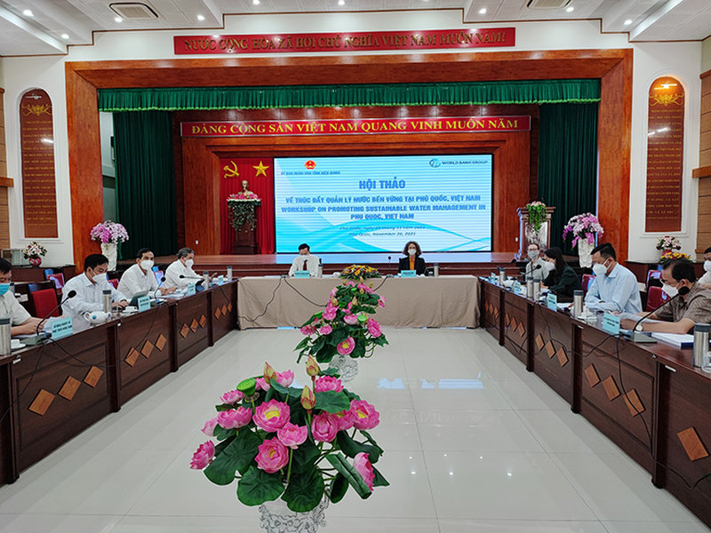 Ngày 26.11, tại Thành phố Phú Quốc, tỉnh Kiên Giang phối hợp với Ngân hàng thế thới (WB) và Cơ quan Phát triển quốc tế Úc (Aus AID) tổ chức Hội thảo trực tuyến về thúc đẩy quản lý nước bền vững tại Phú Quốc tỉnh Kiên Giang.