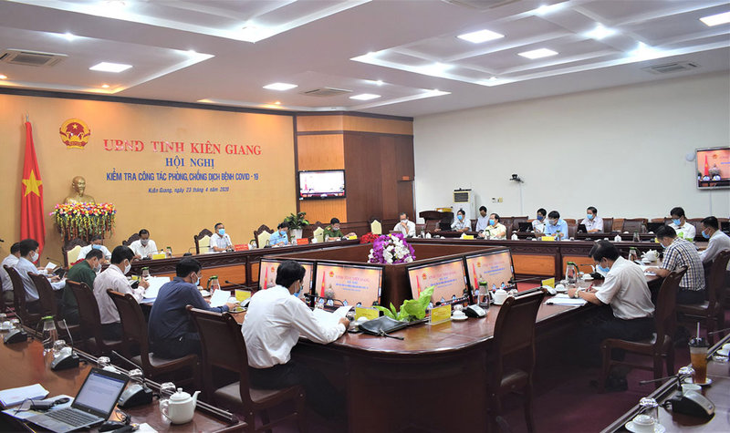Sáng ngày 23/4, ông Phạm Vũ Hồng - Phó Bí thư Tỉnh ủy, Chủ tịch UBND tỉnh, Trưởng Ban Chỉ đạo cùng với bà Đặng Tuyết Em - Phó Bí thư Thường trực Tỉnh ủy, Chủ tịch HĐND tỉnh, ông Đỗ Thanh Bình - Ủy viên Ban Thường vụ Tỉnh ủy, Phó Chủ tịch UBND tỉnh, Phó Ban Chỉ đạo Thường trực đồng chủ trì Hội nghị (trực tuyến), kiểm tra công tác phòng, chống dịch bệnh Covid-19 và gia súc, gia cầm trên địa bàn tỉnh Kiên Giang.