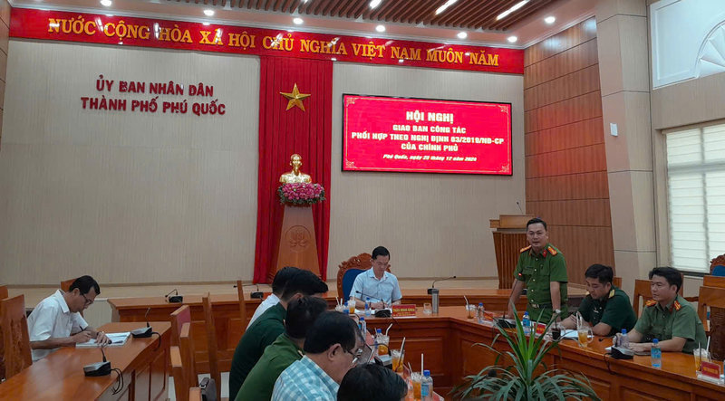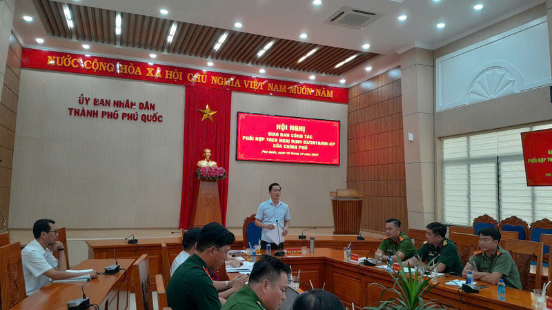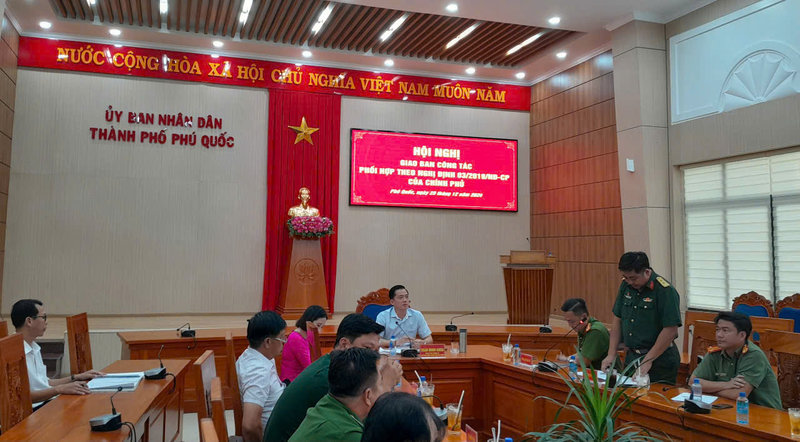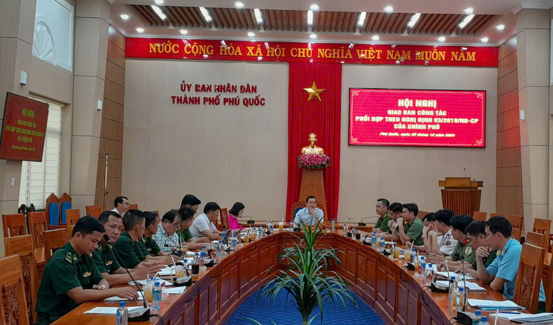 Sáng 25/12, UBND thành phố Phú Quốc tổ chức Hội nghị giao ban định kỳ thực hiện Nghị định số 03/2019/NĐ-CP ngày 05/9/2019 của Chính phủ về phối hợp giữa Bộ Công an và Bộ Quốc phòng trong thực hiện nhiệm vụ bảo vệ an ninh quốc gia, bảo đảm trật tự, an toàn xã hội, đấu tranh phòng, chống tội phạm và nhiệm vụ quốc phòng tháng 12 năm 2024, kết hợp đánh giá tình hình, kết quả thực hiện nhiệm vụ năm 2024. Đồng chí Trần Minh Khoa, Phó Bí thư Thành ủy, Chủ tịch UBND thành phố chủ trì hội nghị.