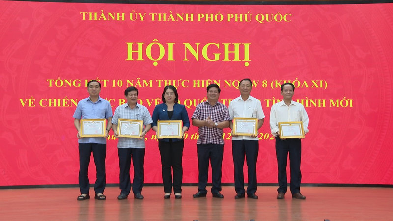 Tại Hội nghị, UBND thành phố Phú Quốc đã tặng Giấy khen cho 04 tập thể và 61 cá nhân có thành tích tốt trong 10 năm thực hiện Nghị quyết Trung ương 8, khóa XI ./.