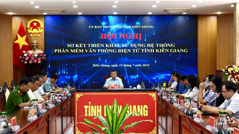 Chiều ngày 15-7, UBND tỉnh Kiên Giang tổ chức hội nghị sơ kết triển khai, sử dụng Hệ thống phần mềm Văn phòng điện tử, Phó Chủ tịch UBND tỉnh Nguyễn Lưu Trung chủ trì hội nghị.
