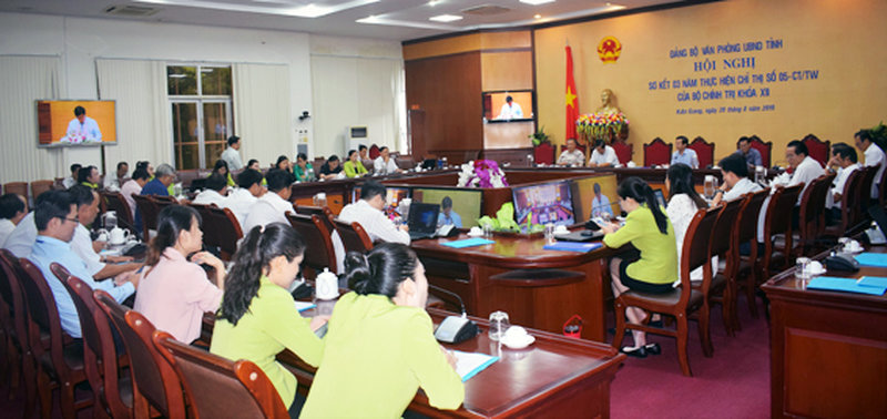 Sáng ngày 20/8, Hội nghị trực tuyến với Trung ương về sơ kết 03 năm thực hiện Chỉ thị 05-CT/WT của Bộ Chính trị khóa XII. Tại điểm cầu Trung ương, do đồng chí Trần Quốc Vượng - Ủy viên Bộ Chính trị, Thường trực Ban Bí thư chủ trì (cùng 63 điểm cầu). Tại Kiên Giang, có 06 điểm cầu cấp tỉnh và 15 điểm cầu cấp huyện, điểm cầu Văn phòng UBND tỉnh (Văn phòng), do đồng chí Đỗ Thanh Bình - Ủy viên Ban Thường vụ Tỉnh ủy, Phó Chủ tịch UBND tỉnh chủ trì cùng đảng viên, công chức, viên chức và người lao động đang công tác tại Văn phòng cùng tham dự.