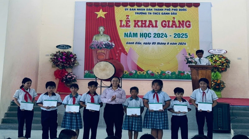 Sáng ngày 05/9, Đại diện Công đoàn Phòng giao dịch NHCSXH thành phố Phú Quốc đến dự lễ khai giảng, trao quà cho học sinh có hoàn cảnh khó khăn tại Trường Tiểu học Dương Đông 2 và Trường Tiểu học và Trung học cơ sở Gành dầu. Tổng giá trị các phần quà là 10 triệu đồng (gồm 25 bộ đồng phục và 5 triệu đồng tiền mặt).